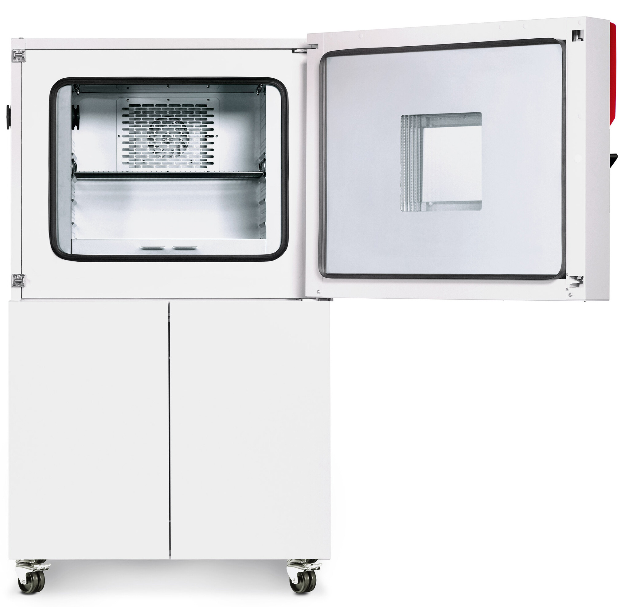De monsters in de Binder MKF 115 omgevingssimulatiekast worden beschermd met een programmeerbare condensatiebescherming. De kast heeft een verwarmd zichtvenster met lcd-binnenkamerverlichting en kan met de controller met periodeprogrammering eenvoudig en ongecompliceerd op iedere vereiste worden afgesteld. Voor een comfortabele belading van de kast is een ruime toegang gegarandeerd. Een foutendiagnosesysteem met optisch en akoestisch alarm zorgt voor veiligheid. Omdat de binnenkamer compleet is gevoerd met roestvast staal, kunnen de omgevingssimulatiekasten eenvoudig worden gereinigd waardoor het risico op contaminaties tot een minimum wordt beperkt. Met vier wielen kunnen de klimaatkasten flexibel worden ingezet. Twee wielen met rem bieden bovendien op de locatie stabiliteit en een veilige stand.