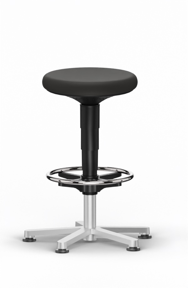 Cleanroom Kruk 3 met glijders, eenvoudige hoogteverstelling via ring onder de zitting.