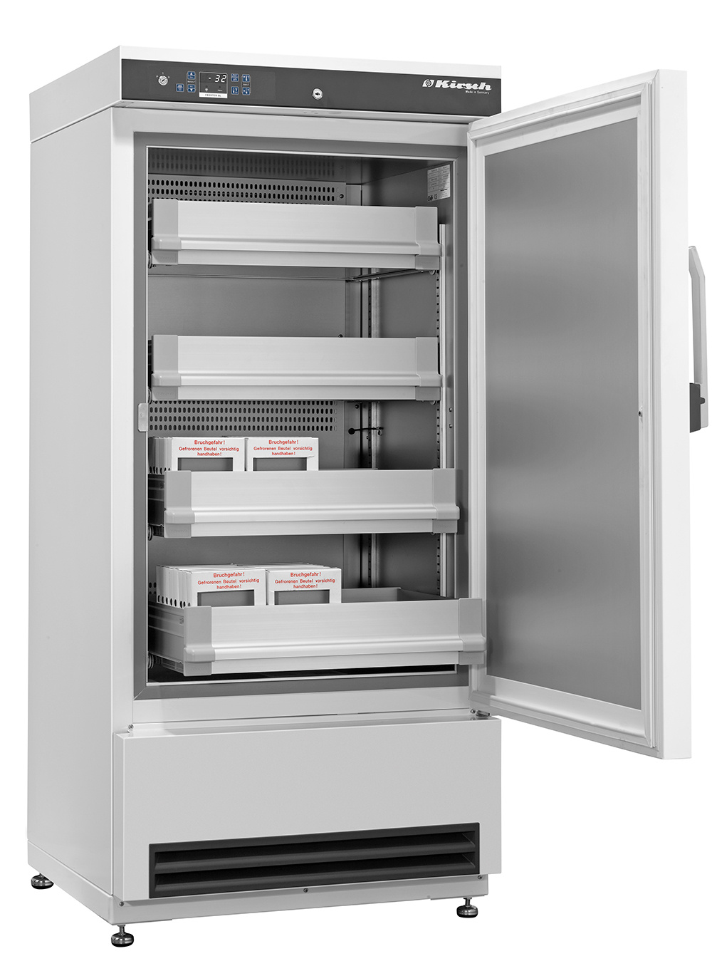 De Kirsch plasma vrieskasten bieden ultieme bescherming en optimale capaciteit voor uw plasma producten. Deze vriezer heeft een inhoud van 300 liter die speciaal gebouwd is om de meest kritische samples te beschermen.