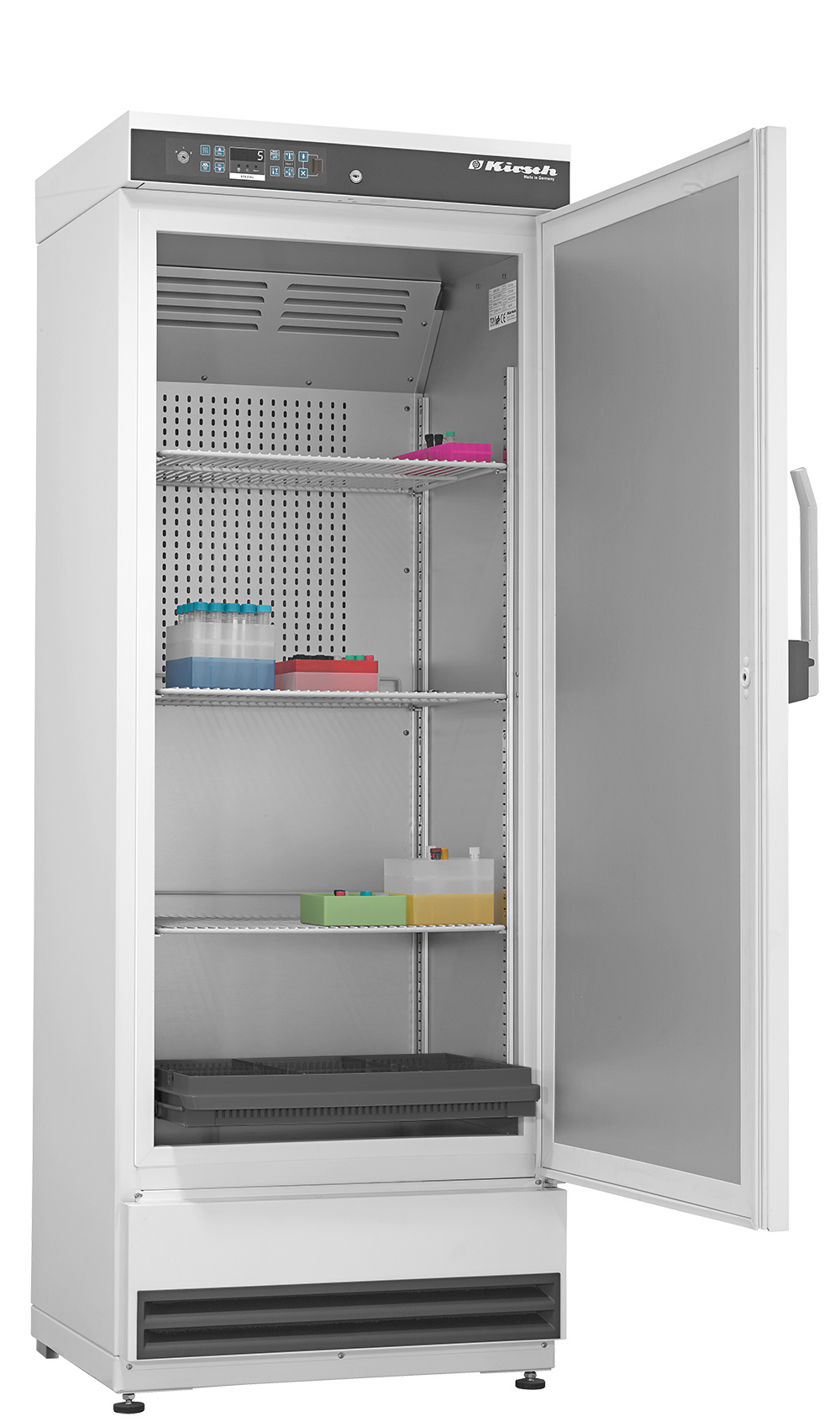 De Kirsch LABO-340 koelkast biedt 330 liter koelruimte met een temperatuurbereik van +2°C tot +20°C. De koelkast wordt standaard geleverd met 1 lade en 3 draadroosters.