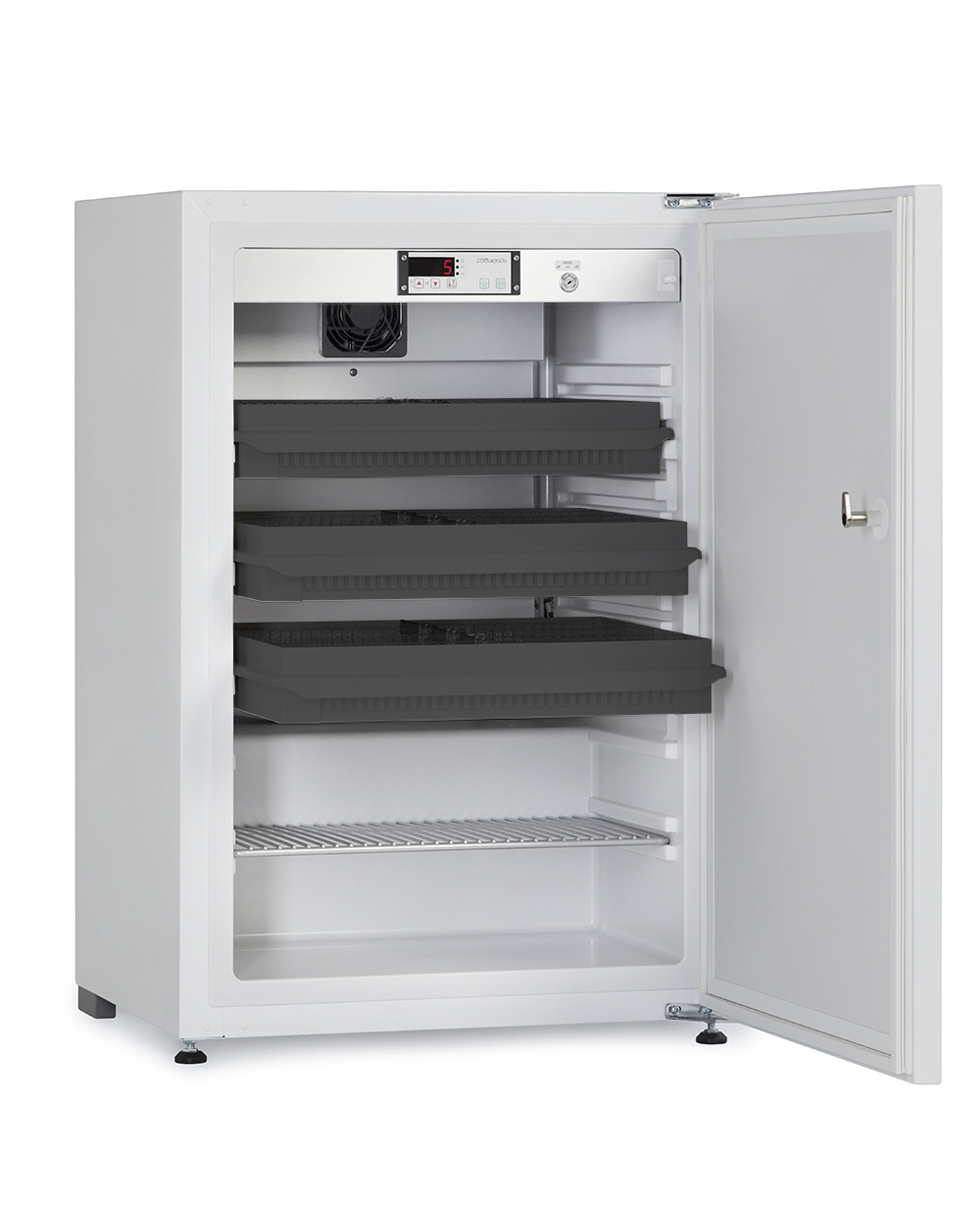 De Kirsch MED-125 medicijnkoelkast biedt 120 liter koelruimte met een temperatuurbereik van +2°C tot +20°C. De medicijnkoelkast wordt standaard geleverd met 3 kunststof laden met vakverdeling en 1 draadrooster. De deur van de koelkast kan gekoppeld worden aan bijvoorbeeld een keukendeurtje.